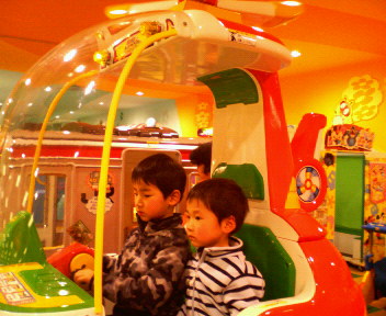 写真は、ジャスコのゲームコーナーで遊んでる長男+次男。