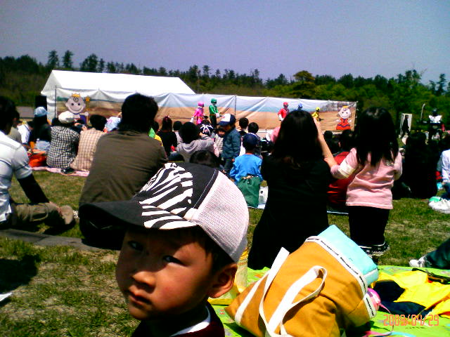 写真は、「シンケンジャーショー」をみる次男。